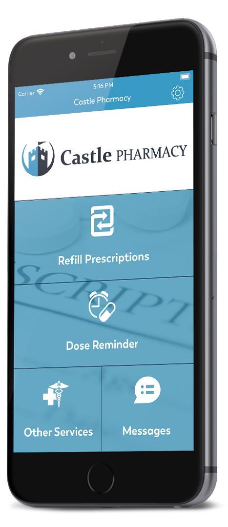 Download the app, enter our code 4667800 and select Castle Pharmacy